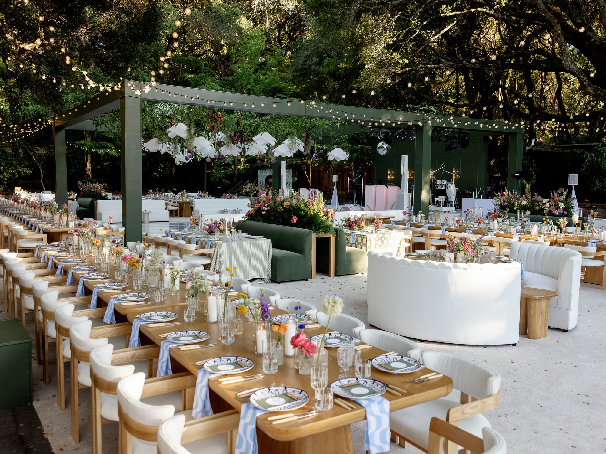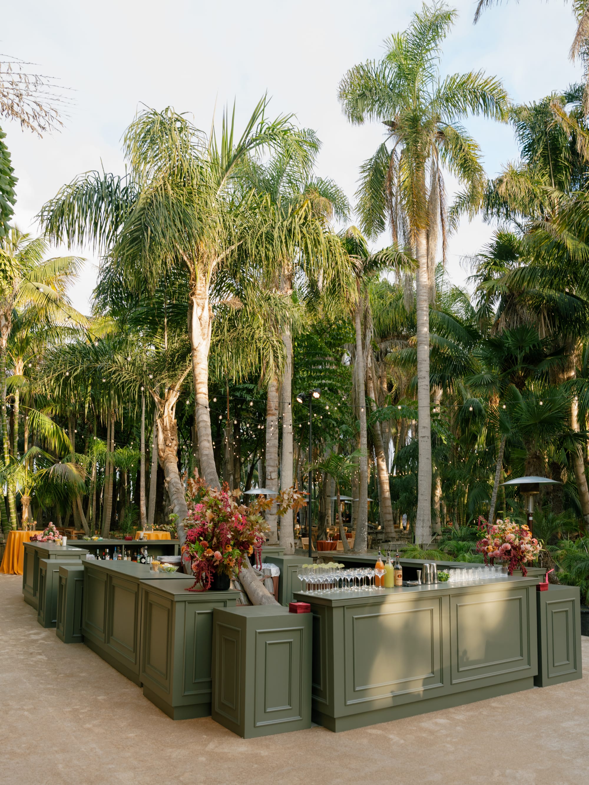 From custom-painted bars to matching DJ stands, wallpapered surfaces, and coordinated upholstery, Found is leaning all the way into a world where design continuity matters from invitation to installation.
